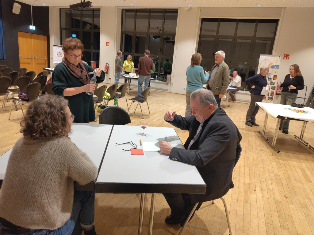 Nach der Eröffnung, bei der sich Pfarrer Gerhard Last sehr bei der Jugend der Friedenskirche bedankte, die alle Gäste mit Getränken und feinem Fingerfood versorgte, referierte Dr. Felix Leibrock, Geschäftsführer des Evangelischen Bildungswerkes München e.V., über die Kraft christlicher Erwachsenenbildung. Mit 10 Thesen setzte er prägnante Aussagen, die er jeweils mit reichem Fachwissen und authentischer Leidenschaft für die Sache auslegte. Sehr deutlich wurde die enorme Kultur und Bildung schaffende Rolle der christlichen Religion für Deutschland, Europa und die Welt dargelegt: von der für alle weitere Bildung grundlegenden Alphabetisierung durch Humanismus und Reformation, über Vorbilder für Bildung, Ethik, Moral und Glaube (Mutter Theresa, Albert Schweitzer u.a.) bis zur auch heute starken Wertschätzung und Unterstützung der kirchlichen Erwachsenenbildung durch den Staat als Bildungsträger. Staatliche Bildungsarbeit baue fest auf die kirchliche Bildungsarbeit, fordere diese auf, ihren wichtigen und notwendigen Beitrag zu leisten. Ohne diesen käme der Staat seiner Aufgabe bei der Bildungsarbeit nicht hinterher. Und so war der abschließende und motivierende Appell des selbst stark engagierten Bildungswirkenden Leibrock, das Licht kirchlicher Erwachsenenbildung nicht unter den Scheffel zu stellen: