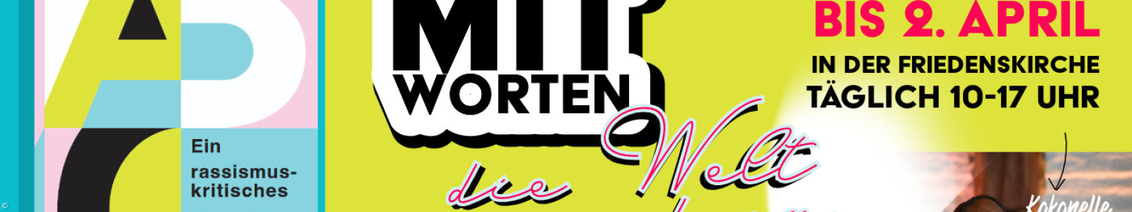 Die Ausstellung "Mit Worten die Welt verändern" entstand 2025 bei "Brot für die Welt" im Evangelischen Werk für Diakonie und Entwicklung e. V. in Berlin, basierend auf dem Buch „Ein rassismuskritisches Alphabet“. Darin ordnet Tupoka Ogette jedem Buchstaben von A bis Z einen Begriff rund um das Thema Rassismus zu, hinterfragt Denkgewohnheiten, deutet auf Alltagsrassismus hin und zeigt Möglichkeiten auf, wie wir rassismuskritisch denken und leben können.