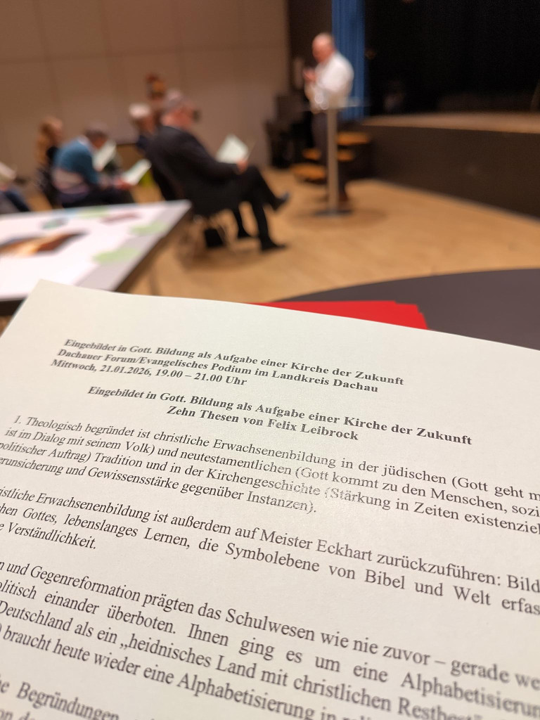 Äußerer Anlass für die Veranstaltung christlicher Erwachsenenbildung war die Erneuerung des Kooperationsvertrages zwischen dem Dachauer Forum und dem Evangelischen Podium im Landkreis Dachau. Beide Anbieter kirchlicher Erwachsenenbildung sind jeweils Gruppierungen der katholischen bzw. der evangelischen Erwachsenenbildung im Großraum München.